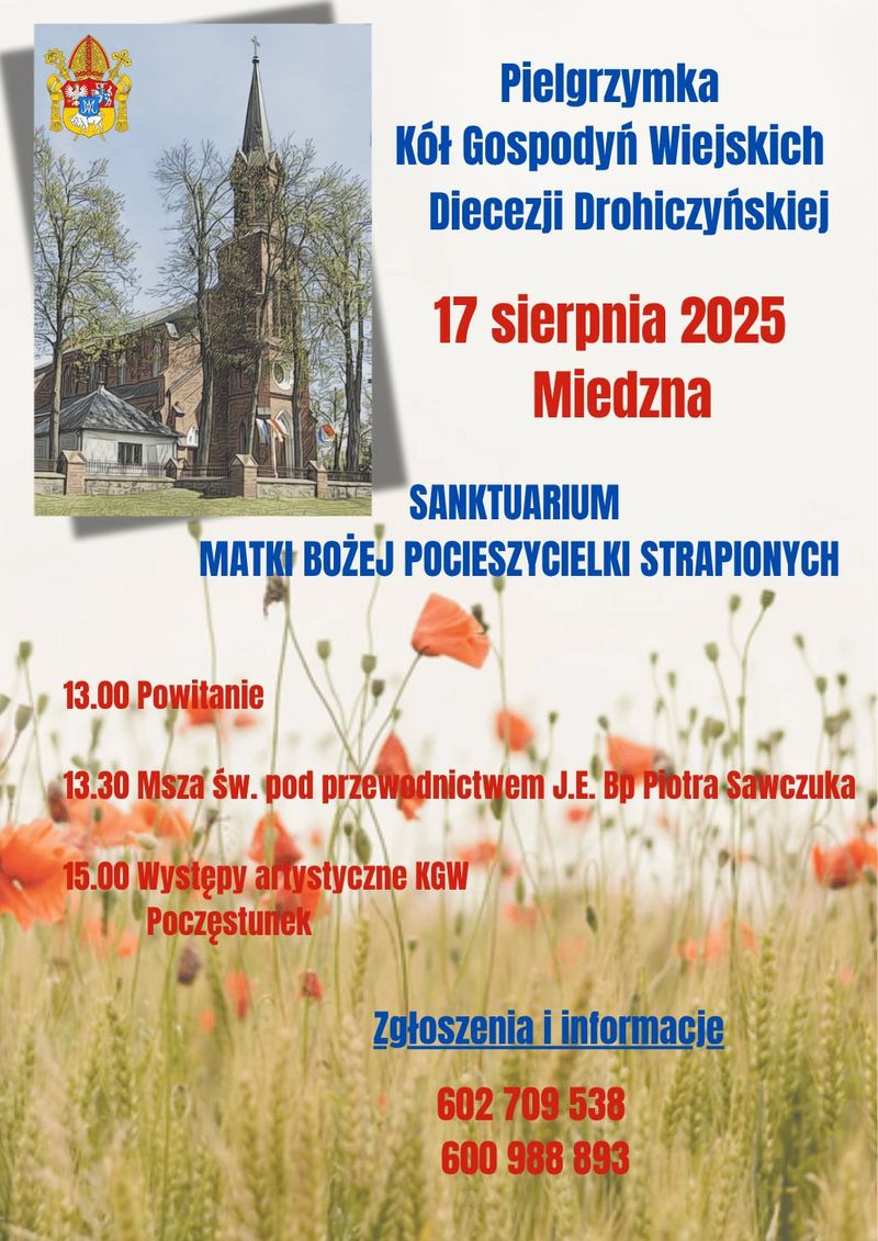 Koła Gospodyń Wiejskich spotkają się na modlitwie i integracji. W niedzielę, 17 sierpnia, w Sanktuarium Matki Bożej Pocieszycielki Strapionych w Miedznie odbędzie się Pielgrzymka Kół Gospodyń Wiejskich Diecezji Drohiczyńskiej. Zapisy na pielgrzymkę trwają do 10 sierpnia.