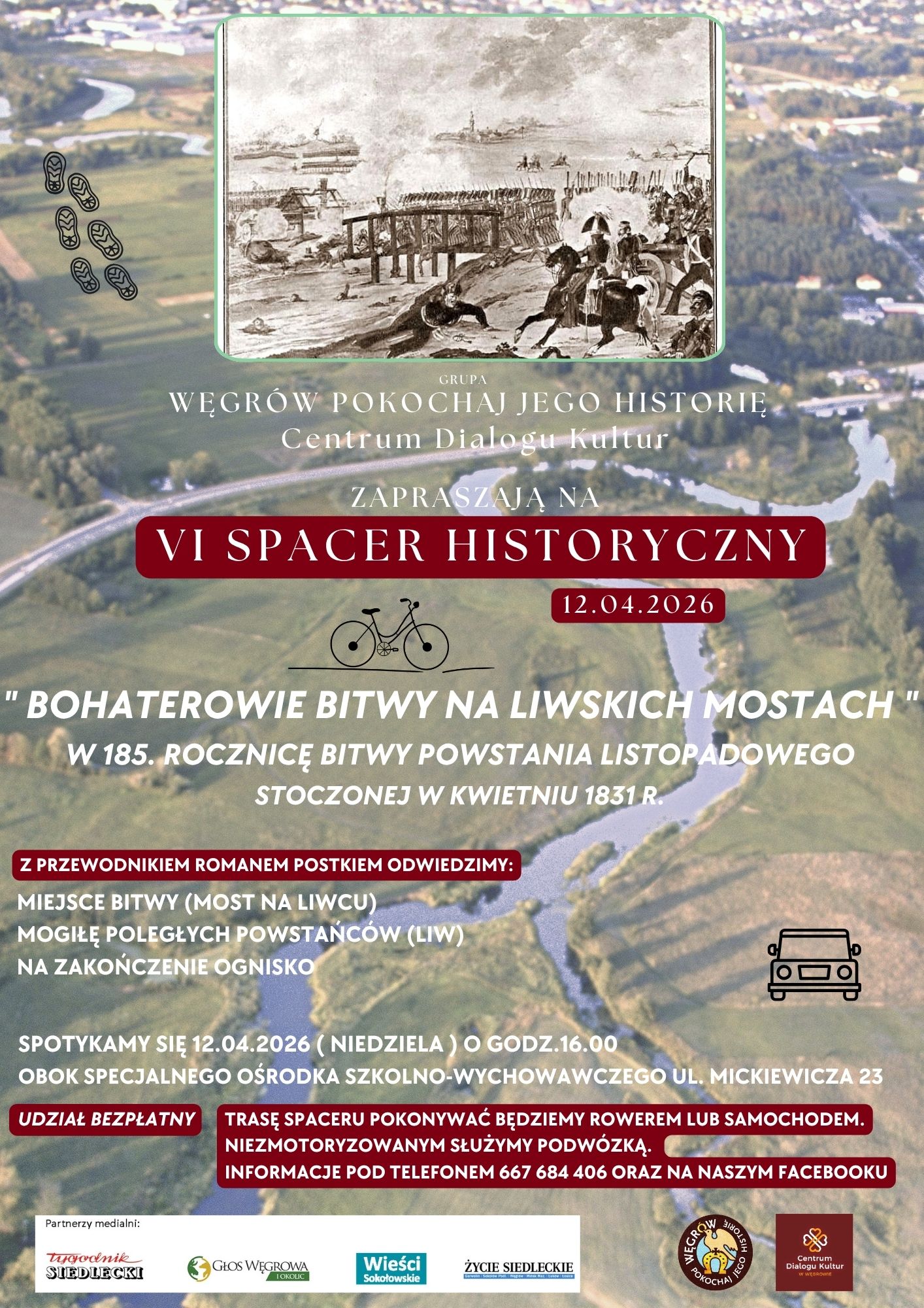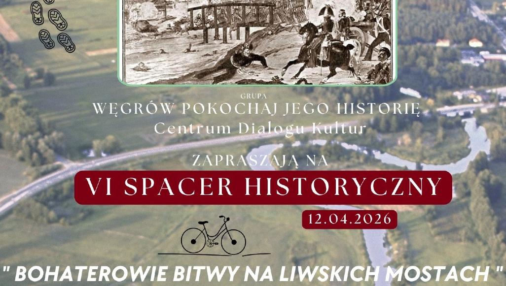 Mieszkańcy regionu będą mieli okazję w wyjątkowy sposób uczcić 185. rocznicę wydarzeń z czasów powstania listopadowego. Grupa „Węgrów Pokochaj Jego Historię” oraz Centrum Dialogu Kultur w Węgrowie zapraszają na VI Spacer Historyczny pod hasłem „Bohaterowie Bitwy na Liwskich Mostach”.