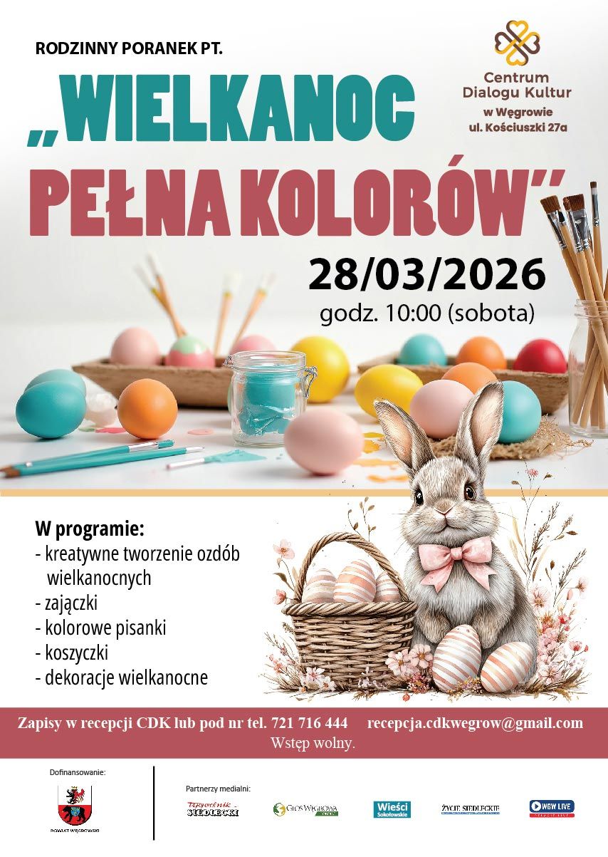 Sobota, 28 marca to przedpołudniowe spotkanie z cyklu „Rodzinny poranek w klasztorze”. W przeddzień Niedzieli Palmowej warsztaty będą poświęcone produkcji wielkanocnych ozdób. Pisanki, zajączki, koszyczki i inne dekoracje – pole do popisu będzie duże. Warsztaty ruszają o godzinie 10.00.