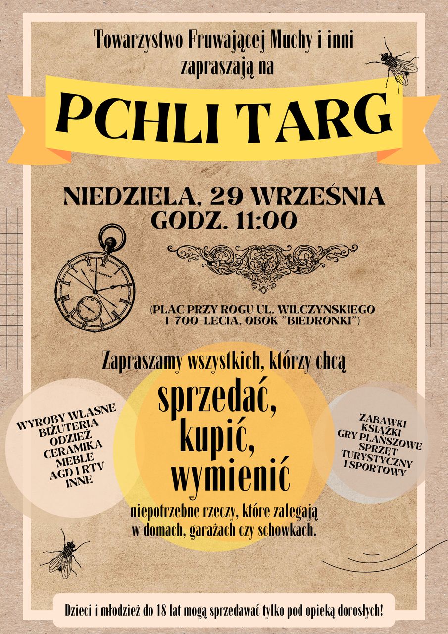 Pchli Targ to miejsce gdzie można sprzedać, kupić lub wymienić się przeróżnymi rzeczami. Organizuje go Towarzystwo Fruwającej Muchy. Odbędzie się w niedzielę, 29 września. Rozpocznie się o godzina 11.00.Organizatorzy przypominają, że dzieci i młodzież do 18 lat mogą sprzedawać na Pchlim Targu tylko pod opieką dorosłych.