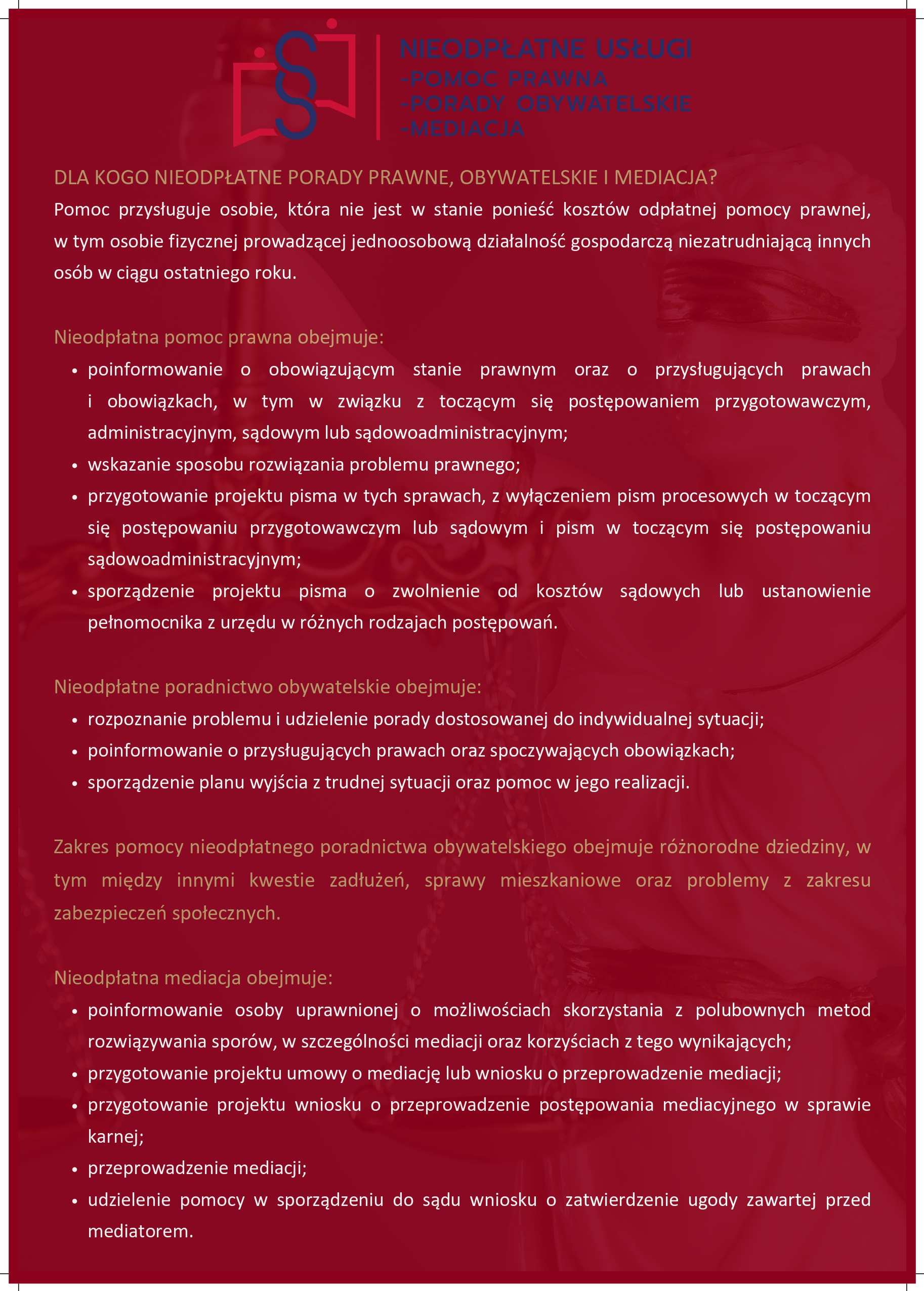 - nieodpłatna mediacja.