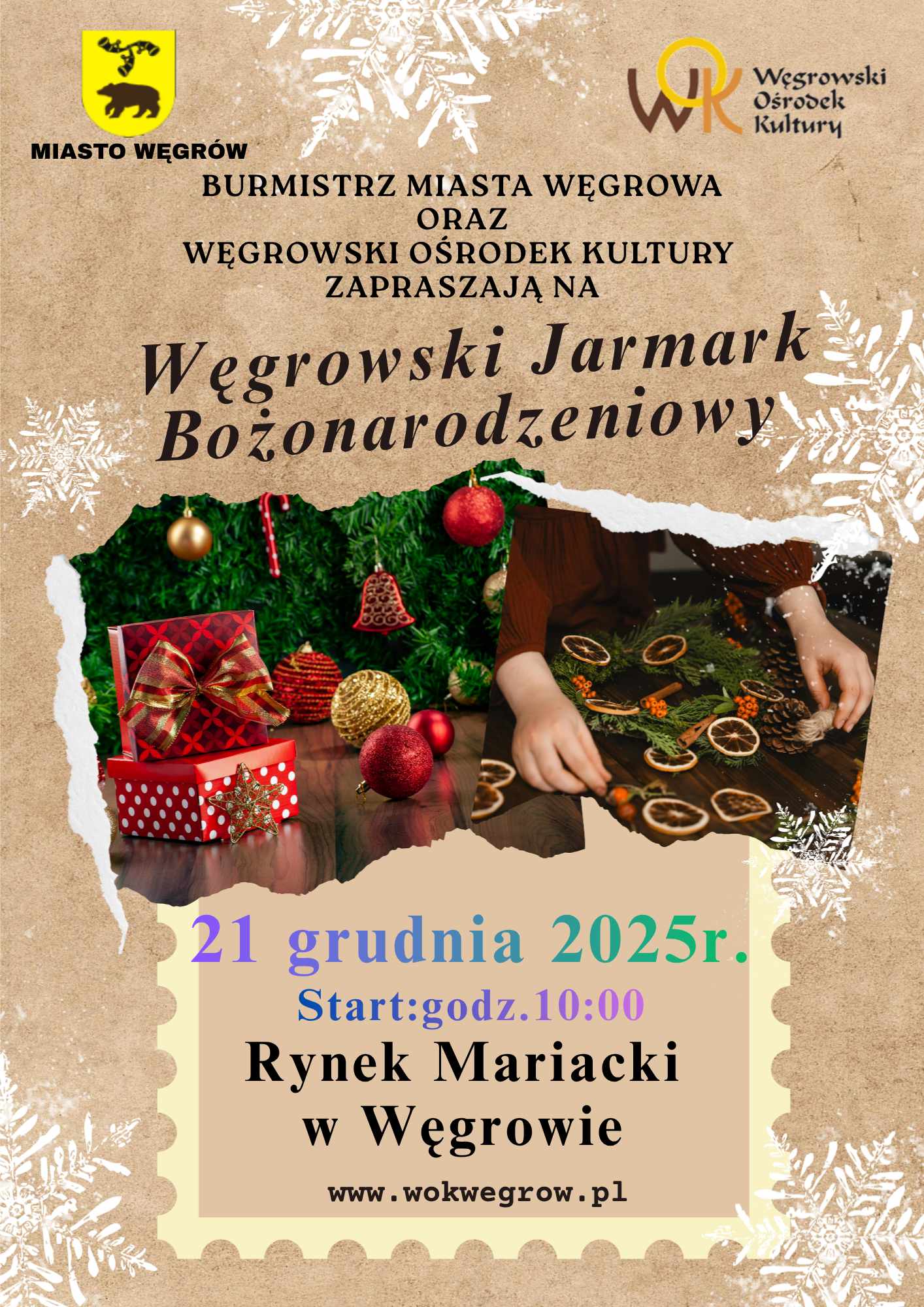 Jarmark rusza o godzinie 10:00 i nie będzie to wydarzenie tylko handlowe. – Po mszy świętej w Bazylice o godzinie 12:00 spotykamy się na Rynku z zespołem „Węgrowianie”. Razem z księdzem prałatem i księdzem biskupem będziemy życzyli mieszkańcom zdrowych, radosnych i spokojnych świąt i wspólnie pośpiewamy kolędy – zaprasza burmistrz Paweł Marchela.Biskup drohiczyński weźmie również udział w przedświątecznym spotkaniu wigilijnym, organizowanym tego dnia w Węgrowie przez diecezjalną Caritas.