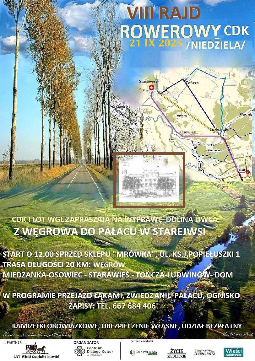 Pałac nie jest placówką muzealną, ale ośrodkiem szkoleniowo-wypoczynkowym Narodowego Banku Polskiego. Choć zalicza się do historyczno-architektonicznych atrakcji powiatu węgrowskiego przeciętny turysta może go zwykle obejrzeć i sfotografować tylko z zewnątrz. Okazja jest więc wyjątkowa, bo organizatorzy rajdu załatwili uczestnikom możliwość wejścia i zwiedzenia go od środka.Rajd wyrusza w niedzielę 21 września w południe z parkingu przy sklepie Mrówka, przy ulicy ks. Popiełuszki 1.